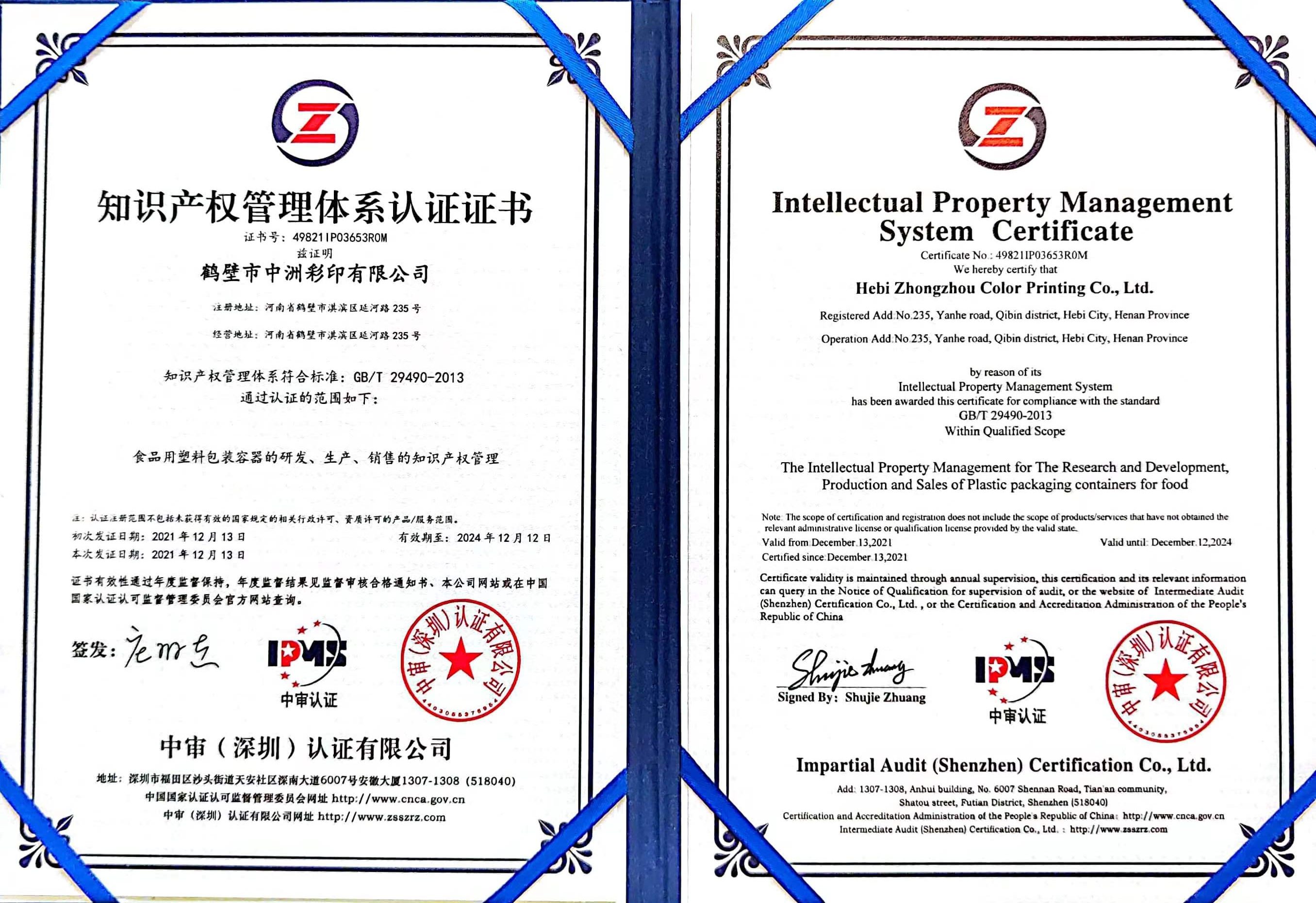 鶴壁市中洲彩印有限公司成立于2010年,位于鶴壁市開發(fā)區(qū)延河路235號,是一家集創(chuàng)意設計、制版、印刷、復合、制袋為一體的塑料軟包裝高新技術(shù)企業(yè)。公司占地42畝,建設有無塵凈化車間8000平方米。現(xiàn)擁有中、高速電腦對版印刷機3臺,干式復合機1臺,無溶劑復合機3臺,制袋機20臺,自有設計工作室,總投資5000余萬元。公司現(xiàn)有員工120余名,其中專業(yè)技術(shù)人員50人,年產(chǎn)值1.2億元。公司于2020年1月份通過了ISO9001質(zhì)量體系認證,是目前豫北地區(qū)較大的塑料軟包裝制作企業(yè)。 →
